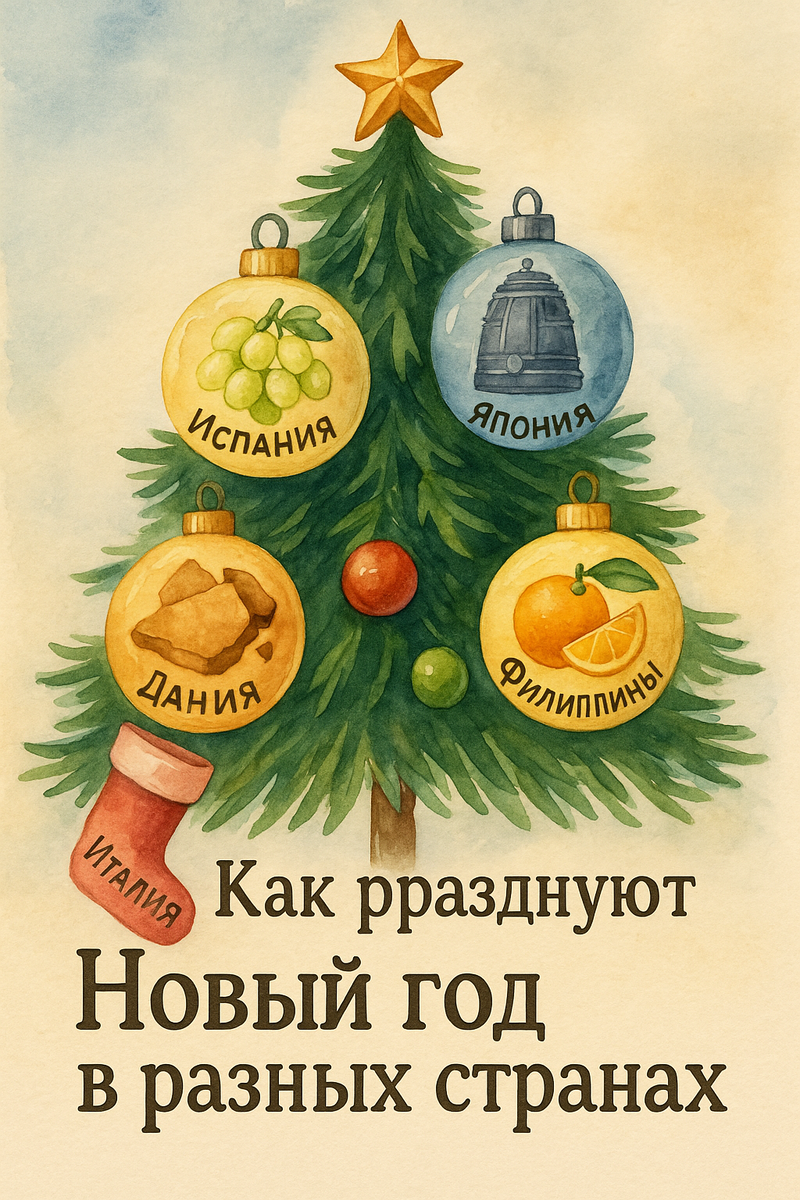 Новый год — праздник, который любят все. Но как по-разному его встречают! У каждой страны — свой ритуал, своя магия, свои надежды. Давайте вместе совершим небольшое путешествие в обычаи — и может быть, найдём что-то, что захочется повторить каждому из нас. Испания: 12 виноградин на удачу. В Испании Новый год встречают с весёлым, но драматичным ритуалом: «12 виноградин под 12 ударов курантов». Под каждый удар часов нужно успеть съесть по одной ягоде — успел на все 12 ? Значит, год будет удачным и спокойным. Точки старта — у часов на главной площади Мадрида, но чаще всего семьи и компании встречают Новый год дома под телевизор. Такой ритуал — лёгкий, символичный, весёлый. Япония: 108 ударов колокола — очищение и спокойствие. В Японии на Новый год действует очень глубокая традиция: перед наступлением полуночи в буддийских храмах бьют колокол 108 раз. Этот ритуал называется Joya no Kane — «колокол старого года». Каждый удар символизирует один из земных пороков, внутренних тревог и страхо