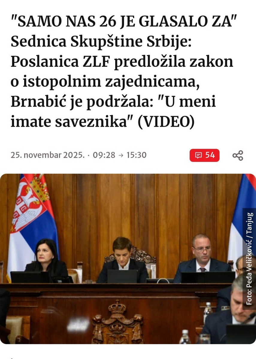В ответ на пост 🇷🇸🇷🇺🇪🇺 Сначала НИС, потом «западные ценности»? Парламент Сербии внес поправку, предусматривающую возможность передачи «НИС» Сербии. Но это еще не все новости. Тут прозападные «зеленые» леваки начали в парламенте публично требовать закон о признании однополых браков. ❗️ И, не поверите, их поддержала председатель парламента Ана Брнабич, которая голосовала, чтобы эта темы обсуждалась официально в парламенте. Несмотря на весь прозападный курс текущего правительства, она одна выступила «за». ▪️ «Зеленые» шизанутые леваки жалуются, что только 26 депутатов голосовало «за», но на это Брнабич ответила, что «у них есть союзник в ее лице». ▪️ Если вы вдруг забыли детали биографии Бранбич, напомню: Экс-премьер, а ныне председатель парламента - открытая лесбиянка и даже воспитывает ребенка в однополом браке. Человек, воспитанный NALED и USAID. И да, это она продвигала эту «радужную» повестку, добивалась проведения этих «парадов», выступала за однополые браки и лично участв