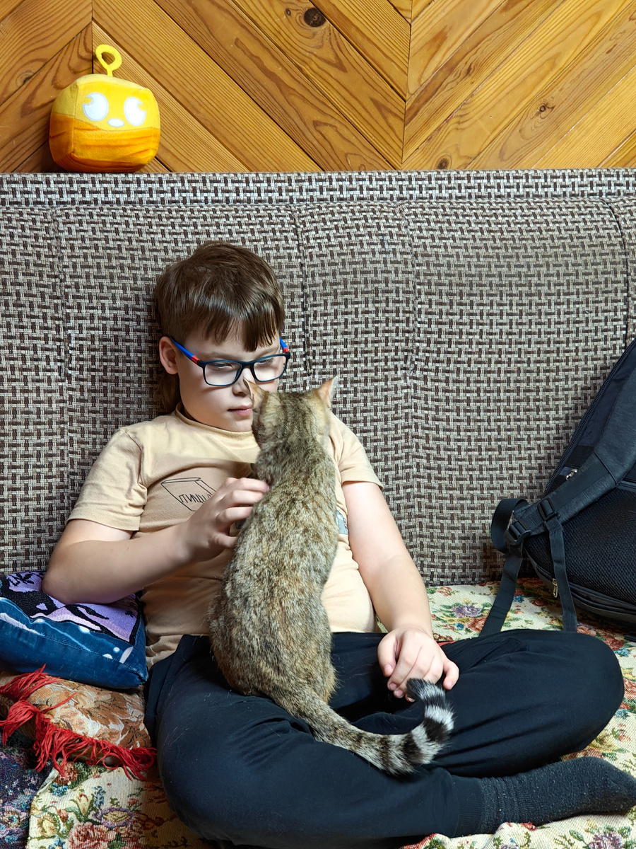 Утром мы проснулись, покормили животных, Саша сварила кофе, приготовила завтрак, Саша с детьми позавтракали, я попил кофе, мы собрались и поехали на работу и в школу. Арсений проснулся в восемь часов, позавтракали. После завтрака Арсений играл в мягкие игрушки или доктора: - у гуся болит крылышко, надо загипсовать. - у кота болит ушко, надо покапать. - у капибары болят глазки, надо покапать глазки. - у собачки болит животик, надо сходить в туалет. - гусенок, ничего не болит - лети на юг. В обеденный перерыв Саша приехала домой, все вместе пообедали, Саша уехала на работу, к Арсению пришла учительница Елена Юрьевна, занимался Сеня хорошо, печатали тексты на компьютере. После занятий Арсений играл в планшет. У мальчишек в школе всё хорошо, получили пятëрки по музыке, четвёрки по ИЗО, биологии. После окончания уроков Семён пошёл домой, Степан пошёл к Саше на работу, поделал там уроки, а затем пошёл на шахматный кружок. Саша после окончания рабочего дня забрала Стëпу с кружка, пое
