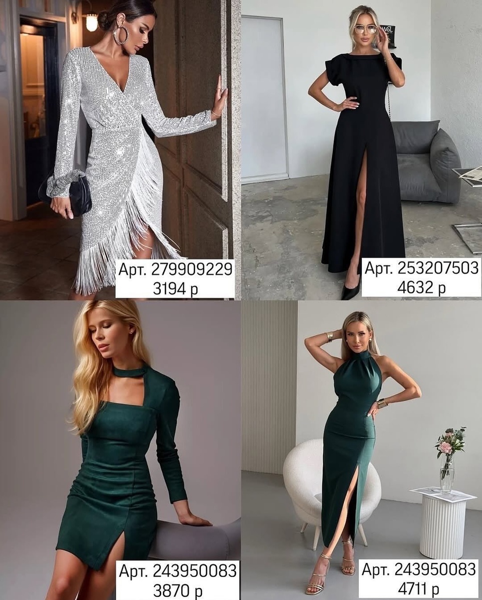 Праздничный сезон — это время, когда хочется блистать так, чтобы каждый шаг оставлял шлейф восхищения. Правильно подобранное платье может не просто подчеркнуть красоту, но и раскрыть характер женщины: смелой, нежной, яркой, загадочной. В этой подборке — лучшие наряды с WB, которые подойдут для новогодней ночи, корпоратива, зимней свадьбы или торжественного выхода. Каждый образ продуман до мелочей: линии, фактуры, посадка — всё работает на то, чтобы вы выглядели безупречно. ✨ ПЕРВЫЙ КОЛЛАЖ Арт. 279909229 — 3194 р Потрясающе эффектное платье, полностью расшитое пайетками, создаёт иллюзию светового потока. Бахрома по низу нежно движется при каждом шаге, добавляя динамику и чувственность. V-образный вырез подчёркивает вырез декольте, а длинный рукав уравновешивает блеск, создавая гармонию. Совет стилиста: сочетайте с серебристой сумочкой и крупными серьгами-кольцами. Обувь — максимально изящная, на тонком каблуке. Арт. 253207503 — 4632 р Идеальный пример современной элегантности. Чистая л