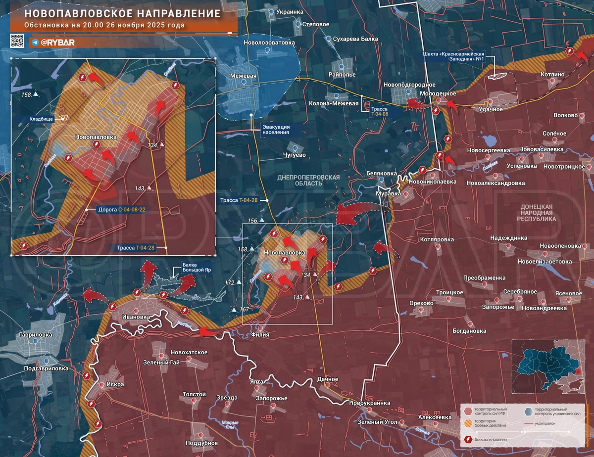 Битва за Новопавловку 🔸В Днепропетровской области российские штурмовики действуют уже практически по всей территории села Новопавловка, бывшего укрепрайоном ВСУ. 🔸После того, как в город проскочила первая бронегруппа с десантом, противник попытался стабилизировать обстановку. Однако переброска подкреплений украинским формированиям не помогла. 🔸Еще в первые дни штурма бойцы ВС РФ смогли добраться аж до северных окраин населенного пункта. А теперь — после подхода свежих сил — они закрепляются на юге и в центре села. 📌 При этом Новопавловка находится в низине, а севернее и западнее от нее идет кряж у западного берега реки Соленая. И надолго задерживаться в Новопавловке будет чревато — перепады высот достигают в среднем пятидесяти метров. ❗️И потому весьма вероятно, что скоро оживятся и другие, фланговые участки Новопавловского направления. В частности, со стороны Ивановки уже есть как минимум локальные успехи в продвижении на север. 🔸Если у Вас есть дополнения по обстановке, Вы хотит