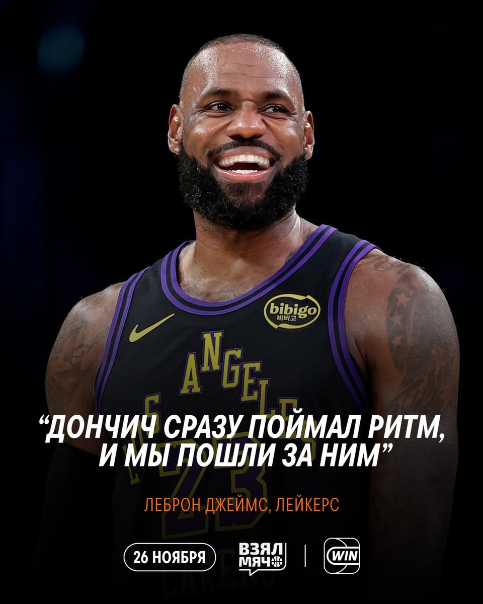 💪 Лука Дончич повёл за собой «Лейкерс» 🗣 «Наши взаимодействия становятся лучше от матча к матчу. Сегодня это было видно. Лука сразу поймал ритм, и мы пошли за ним. Все трое хотим одного — успеха для этой команды, поэтому дополняем и поддерживаем друг друга. Чтобы стать действительно хорошей командой, нужно защищаться — это мы доказали в четвёртой четверти. Талант важен, но без характера и работы каждый день не добраться до финала. Нельзя опускать руки даже после поражений». Джеймс, Дончич и Ривз на троих набрали 99 очков в сегодняшнем победном матче и гарантировали себе место в плей-офф Кубка НБА. 🏀 ПОДПИШИСЬ — ЗДЕСЬ ЖИВЁТ БАСКЕТБОЛ!