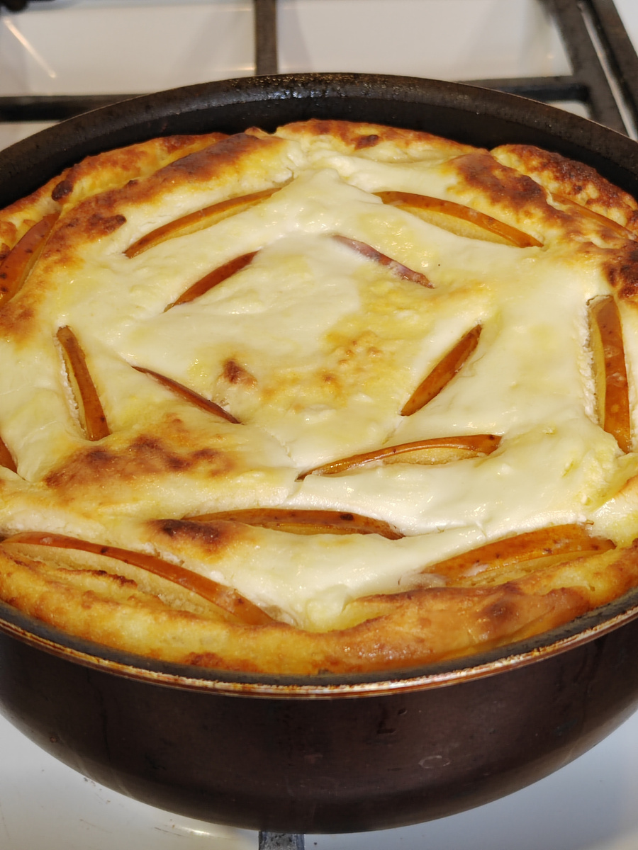 Язык не поворачивается назвать это блюдо запеканкой! Это пудинг! Нежный, воздушный, ароматный! 🍰 Полстакана манной крупы залить половиной стакана теплого молока и оставить набухать. 🍎 Взять 3 яйца и отделить желтки от белков. Белки убрать в холодильник. 🍰 700 гр творога, 2 столовые ложки сахара, 0,5 чайной ложки соли и ванильный сахар растереть с желтками. Добавить разбухшую манку, перемешать. 🍎 Очистить и нарезать яблоко мелким кубиком. Смешать с творожной массой. 🍰 Взбить миксером охлаждённые белки с щепоткой соли до белых пиков. Ввести взбитые белки в творожную массу и осторожно перемешать. 🍎 Форму для запекания диаметром 22-24 см сбрызнуть маслом, выложить массу и намазать двумя ложками сметаны. Можно украсить тонкими ломтиками яблока. 🍰 Выпекать 45 минут при 180 градусах. Перед подачей немного охладить.