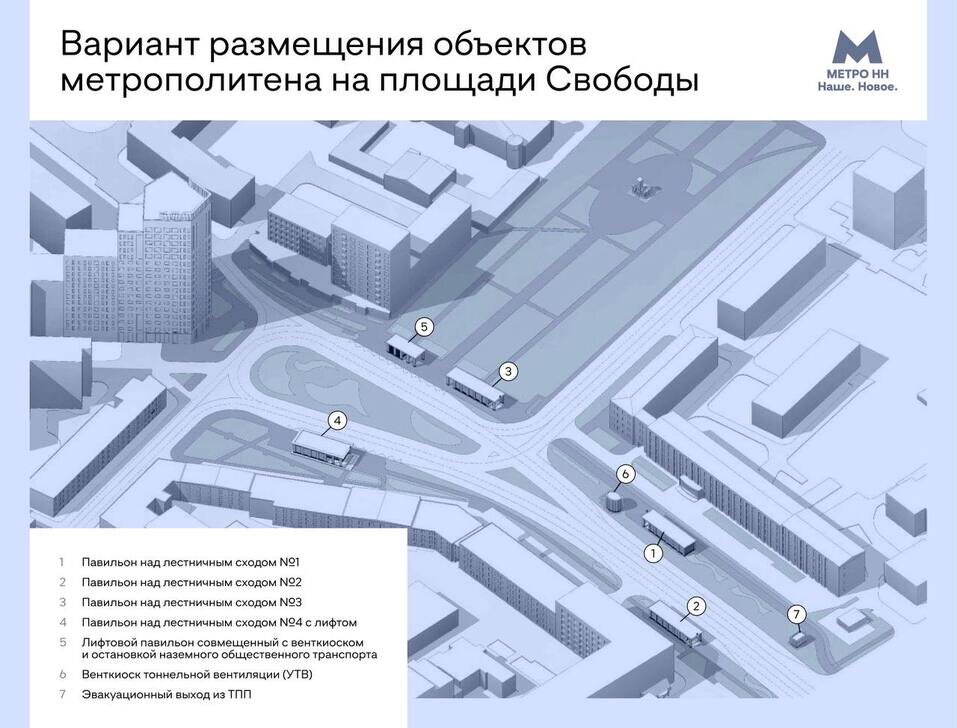 Опубликована схема размещения павильонов метро на площади Свободы в Нижнем Новгороде