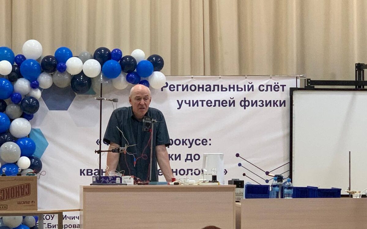 ⚡️В состав делегации ДГТУ вошли - проректор по научной и инновационной деятельности Ширали Юсуфов, преподаватели университета, а также Андрей Тарчевский - сотрудник МФТИ, специалист по работе с одаренными детьми, приглашенный лектор научной школы по экспериментальной физике, прошедшей накануне в ДГТУ. ⚡️На площадке слета Андрей Тарчевский провел мастер-класс - выполнение учебного физического эксперимента по различным разделам школьного курса физики с применением авторских методик. Его уникальность заключается в том, что для проведения опытов не требуется дорогостоящее оборудование или специальные расходные материалы. При этом эксперименты остаются зрелищными, наглядными и позволяют в полной мере закрепить теоретический материал. Мастер-класс вызвал живой интерес у учителей, так как предложенные методики позволяют эффективно организовать учебный процесс даже в условиях недостаточного материально-технического оснащения. Ширали Юсуфов отметил: «Региональный слёт учителей физики - важный