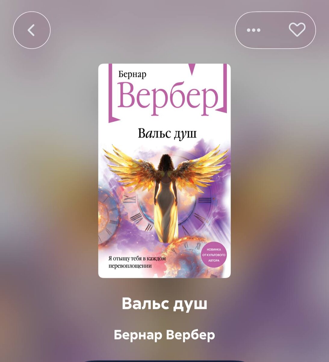 "Вальс душ" - Бернар Вербер Жанр #книги: #фэнтези ✨Субъективное мнение: 9/10. Новый роман от уже полюбившегося автора. Поскольку понимала стиль написанного, а заявленная на обложке тематика, была мне близка - изначально была настроена к работе лояльно. И изза этого же, было интересно наблюдать за любым её творческим становлением 🪽Лёгкий язык книги не скрывает её претензий на глубину. Фантастический сюжет искусно сплетает науку, религию и философию побуждая размышления о фундаментальных вопросах бытия. И принятии в качестве возможной модели, теорию развития души, ставшую популярной, в последние годы. Еще лет пять назад, приходилось объяснять, о чем это.. А сейчас, представляясь в художественной форме, она может быть благосклонно принята даже самыми ярым скептиком. Честно, пока так и не перестала внутренне ликовать, если в процессе чтения соприкасаюсь с эпохой в которой происходят события. А поскольку произведение свеженькое, 2025 года, то в нем уже вовсю фигурирует ИИ, а наши совре