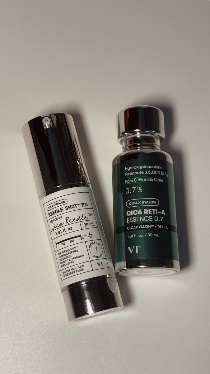 👇 📠reedle shot 700 та самая сыворотка с микроиглами наносить их совсем не больно, ощущается как лёгкое покалывание результат от использования видно сразу: поры становятся чище, воспаления уходят быстрее, лицо выглядит свежим уже с утра 📠cica reti-a essence 0.7 бустер-эссенция с ретинолом и центеллой текстура лёгкая, быстро впитывается ретинол мягкий, а центелла отлично успокаивает даже чувствительную кожу буквально через пару дней – более ровная текстура и здоровый тон если вы искали что-то, что даст реальный и быстрый результат, VT Cosmetics мастера таких штук✨ а вы уже пробовали уход с микроиглами?📖