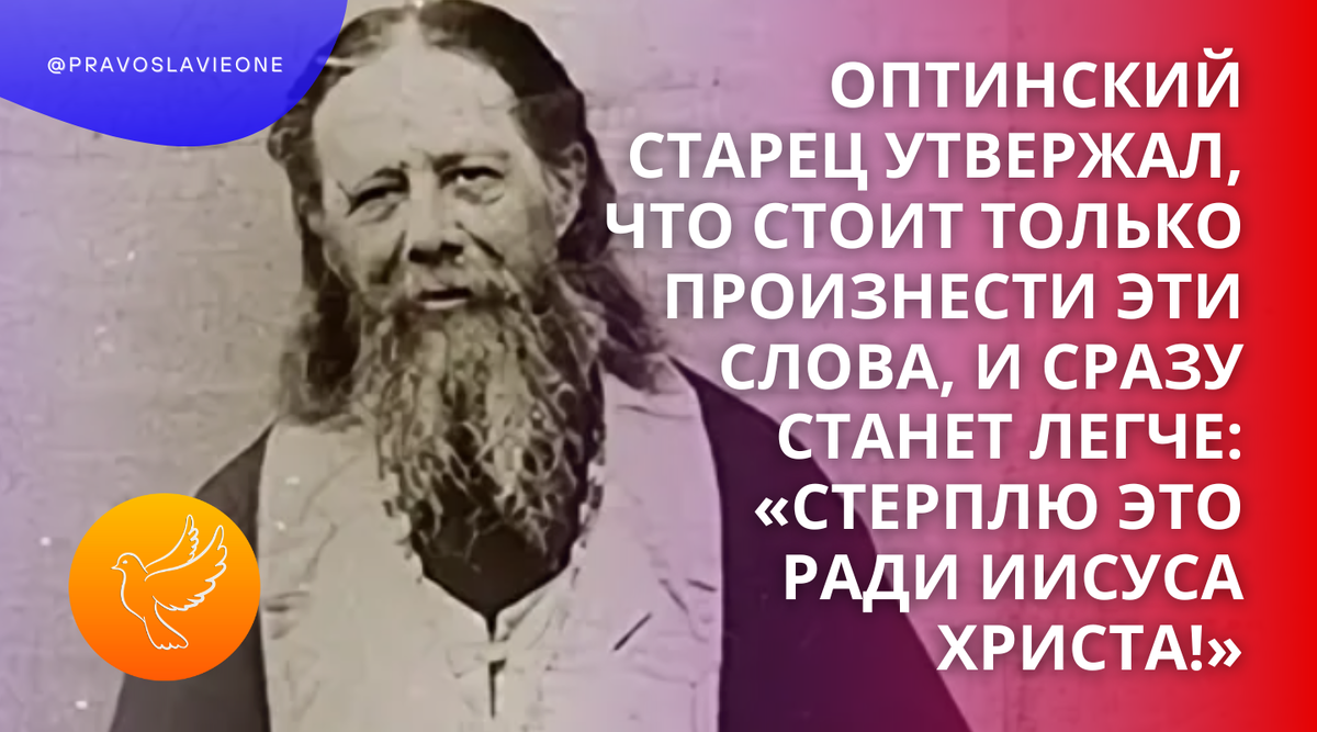 Оптинский старец утвержал, что стоит только произнести эти слова, и сразу станет легче: «Стерплю это ради Иисуса Христа!»