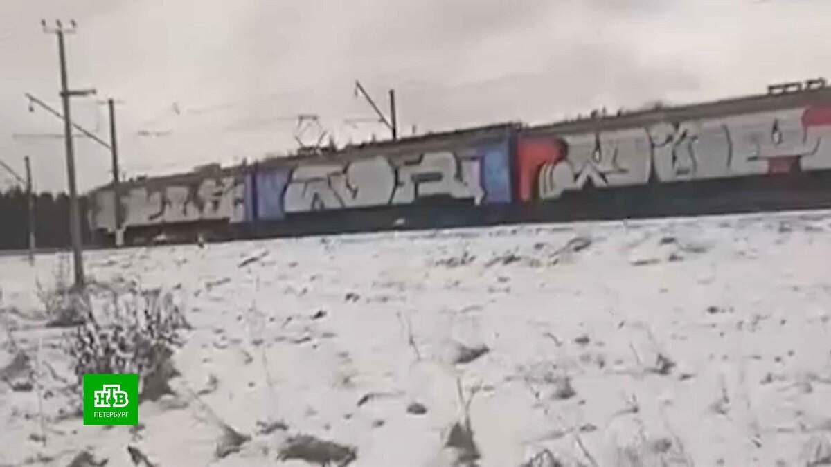 [ Смотреть видео на сайте НТВ ] Сегодня на железнодорожной станции Новинка в Гатчинском районе Ленобласти вандалы расписали граффити электричку, которая должна была следовать в Петербург. По словам очевидцев, молодые люди приехали на нескольких автомобилях в деревню, оставили их там и отправились на станцию. На то, чтобы разрисовать весь состав, им понадобилось около 20 минут. Охрана, которая снимала всё происходящее на видео, не смогла пресечь несанкционированный арт-демарш. В РЖД подтвердили этот случай вандализма, однако пока не понятно, будет ли руководство железной дороги подавать заявление в полицию. Известно, что электричку придется полностью перекрашивать. Только за 9 месяцев этого года на объектах РЖД произошло более 200 актов вандализма: 127 вагонов испорчено граффити, а 27 составов забросали камнями во время движения. Причиненный ущерб оценивается в 5 миллионов рублей. [ Смотреть видео на сайте НТВ ]