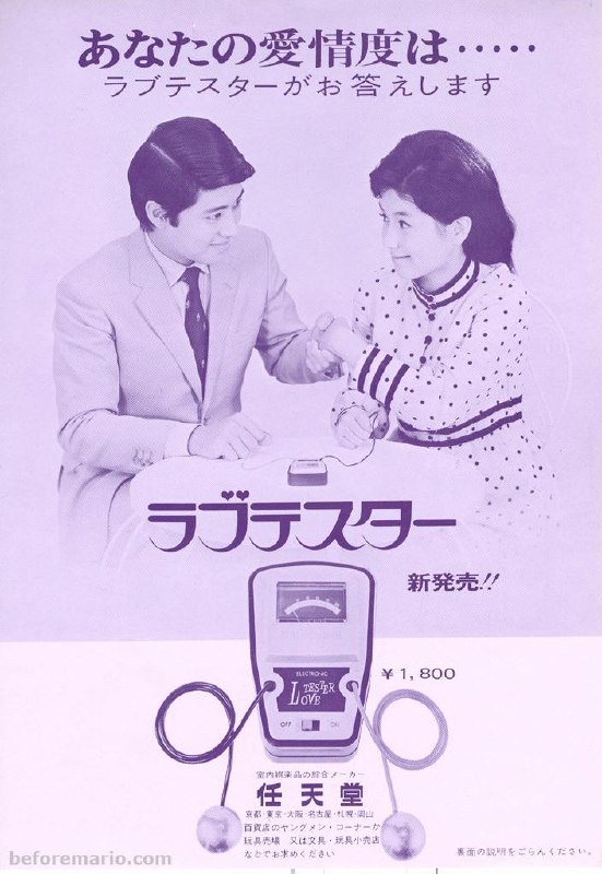 Love Tester: когда Nintendo играла с любовью Love Tester (1969) — одно из первых электронных устройств Nintendo и один из самых необычных продуктов компании. Прибор, как следует из названия, предназначался для проверки «любовной совместимости» между двумя пользователями. Игрушка использовала простую транзисторную схему, стрелочный индикатор и пару металлических датчиков, которые участники удерживали, взяв друг друга за руки. Замыкание цепи через рукопожатие приводило к измерению электрической проводимости кожи, а стрелочный индикатор отображал вовсе не силу любви, а величину сопротивления. Появление Love Tester совпало с ростом японского рынка бытовой электроники и интересом молодёжи к новым гаджетам. Nintendo представляла устройство как способ оживить общение, а его разработчик Гумпэй Ёкои шутил, что показания любовного индикатора могут стать выше, если партнёры поцелуются. Достоверных сведений о масштабах продаж не сохранилось, тем не менее, факт выпуска игрушки за пределами Япон