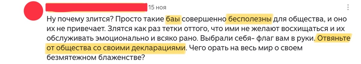 Любой текст говорит о нас что-либо, рассказывает историю. И когда мы видим историю комментария, что мы замечаем? Разговор человека с собственной тревогой, попытку поговорить со своими же представлениями о том как «надо» жить, чтобы чувствовать себя достаточно хорошим. И чем сильнее он держится за свои внутренние правила, тем резче реагирует на тех, кто в них не вписывается (ишь, чего удумали!)