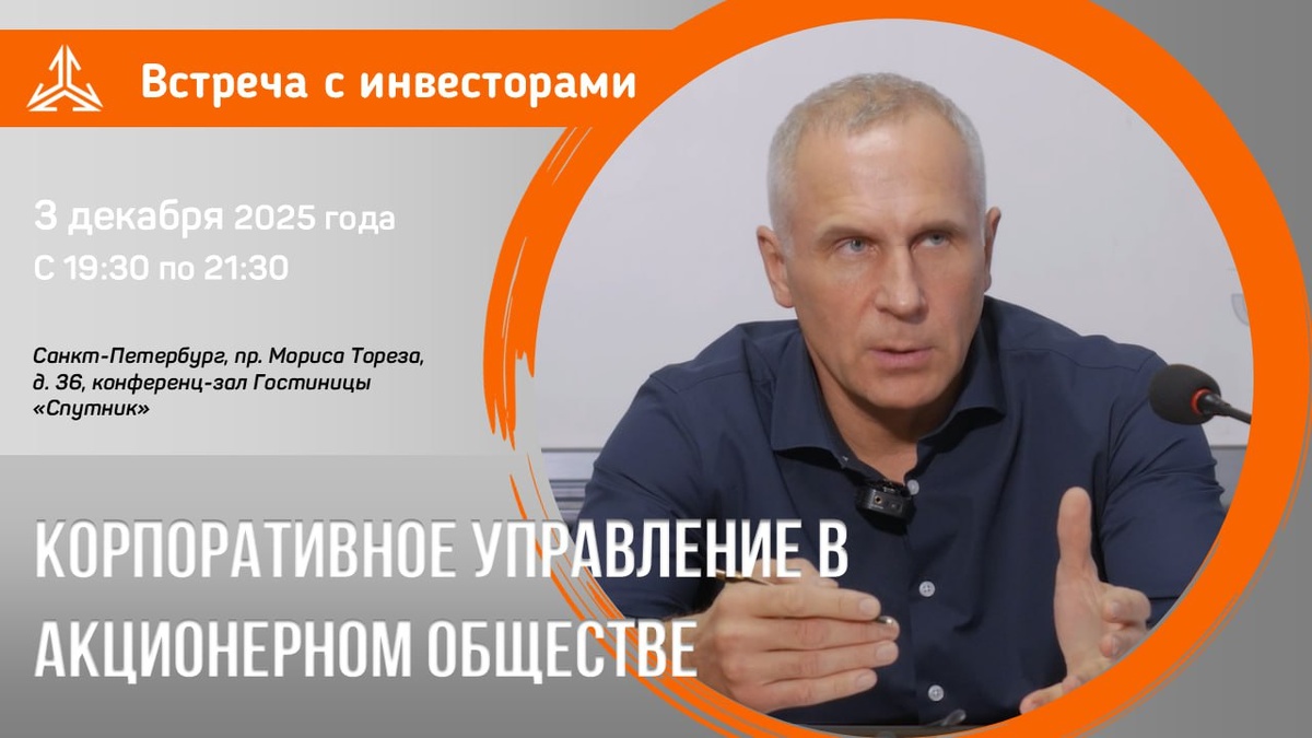 🔥 Приглашаем на ВСТРЕЧУ С ИНВЕСТОРАМИ, которая будет проходить 3 декабря 2025 года с 19:30 до 21:30 в конференц-зале гостиницы «Спутник» (Санкт-Петербург, ст. м. «Площадь Мужества», пр. Мориса Тореза, д. 36). 🤝 Приглашаем всех желающих! Вход свободный! ❓ Тема встречи: «Корпоративное управление в акционерном обществе». Материал является ключевой частью Теории рациональности Арсагеры, и на его раскрытие запланированы три встречи с учетом ответов на другие вопросы участников. ✍️ Если у Вас уже появились вопросы, Вы можете направлять их по адресу clients@arsagera.ru или заполнить специальную форму, чтобы мы могли заранее подготовить на них ответы.