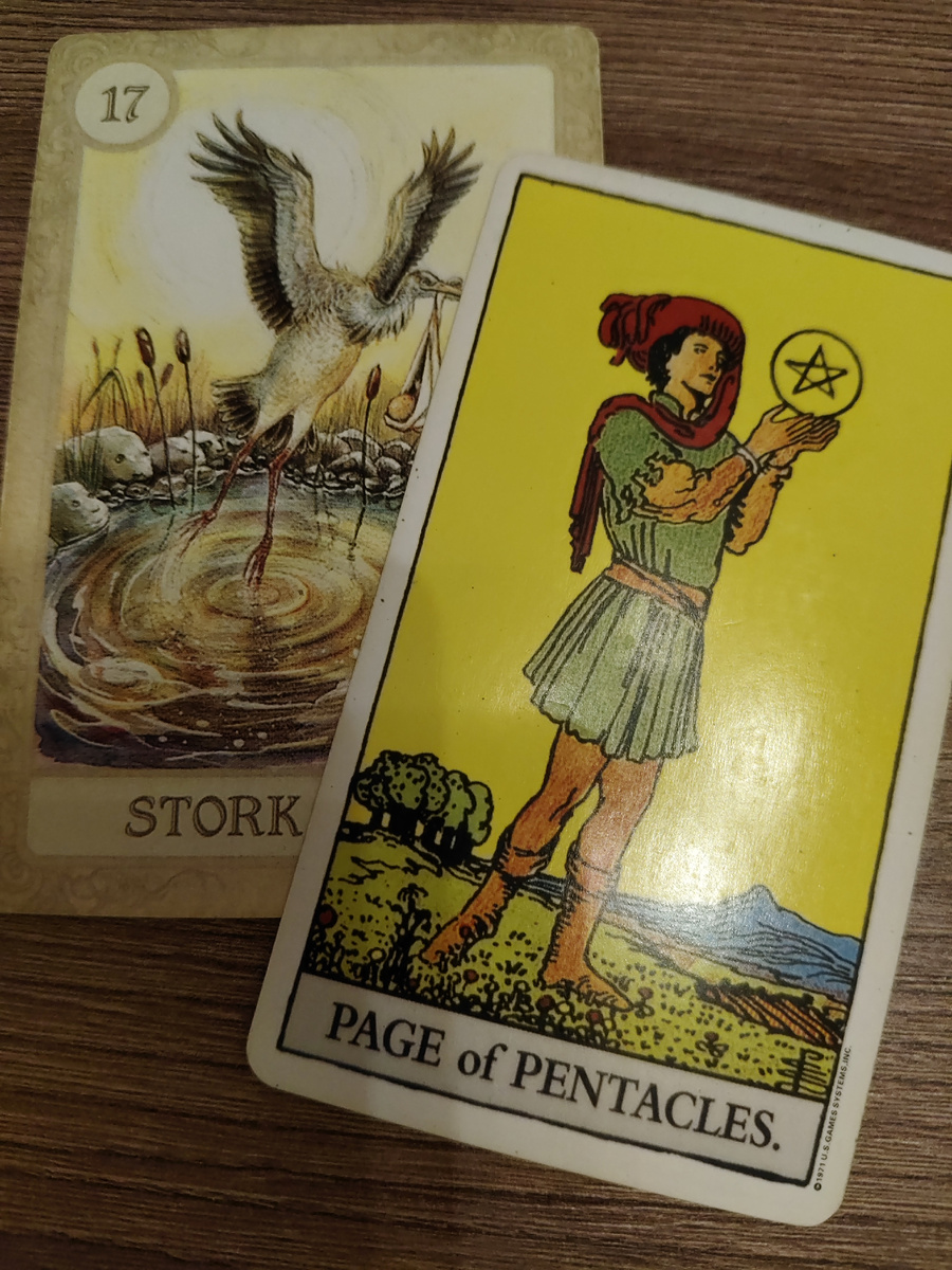 Сочетание карт Аисты в Ленорман и Паж Пентаклей в Таро открывает перспективы новых начинаний, особенно связанных с материальной сферой или домашним очагом. "Аисты" традиционно символизируют перемены, часто касающиеся переезда, пополнения семьи или смены обстановки. В то же время, Паж Пентаклей – это юный энтузиаст, только начинающий свой путь в мире финансов и материального благополучия. Он любознателен, усерден и готов учиться, чтобы достичь успеха.
