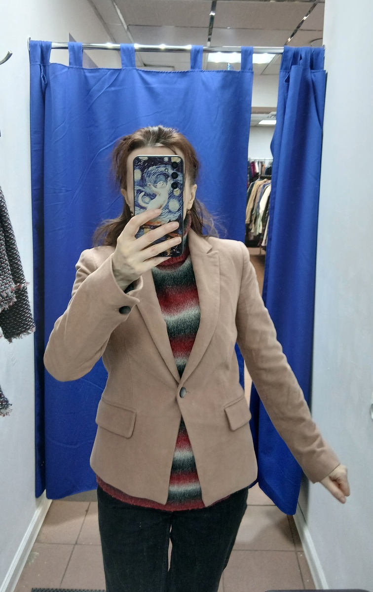 Здравствуйте, сегодня небольшой обзор, цена 3000 за кг. Поэтому можно ещё найти вещички с шерстью в составе)). Ох, кажется мне что этот жакет я уже примеряла в другом магазине. Вот такой бежевый бархатный и на одной пуговице от Манго. У меня неплохая зрительный память, и вот второй раз потянулись руки к этому жакету. Может намек вселенной? Может мне пора в бархат облачиться?🤣 Косушка из ткани. С металлической фурнитурой и бахромой. Без состава. Незамысловатый серый кардиган. Если я была бы помоложе, во времена увлечения вышивкой, то загорелась бы купить и что-то вышить на нем. Можно не уметь читать и по картинке все понятно, что кардиган обещает быть теплым. Мягкий свитер с большим воротником. Зелёный с жёлтым оттенком и светлые жёлтые резинки. Чуть мохера и синтетика. Куртка с большими карманами. Демисезонная. YEST — голландский модный бренд, который более 20 лет представлен на европейском рынке. Компания предлагает комфортную и современную одежду в стиле casual. Вискоза и синтетик