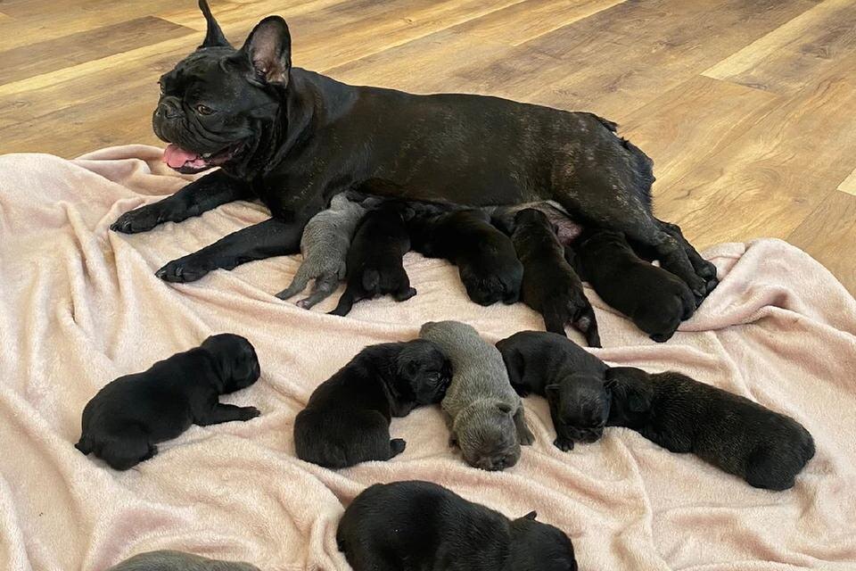 Французская бульдожка из Северной столицы стала матерью-героиней для целого выводка щенков. Уникальный случай для породы официально зафиксировали и внесли в Книгу рекордов России, все 12 щенков уже нашли новых хозяев и разъехались по всей стране, передает «КП-Петербург». Помет из такого количества маленьких «хвостиков» стал для хозяев полной неожиданностью, так как на УЗИ рассмотреть всех не удалось. Владелица Елена Иванова вспоминает, что на последних неделях собака из-за огромного живота не могла ходить и только перекатывалась. Роды длились двое суток и прошли естественным путем, хотя для «французов» это редкость из-за крупных голов щенков. Она рассказала, что первые две беременности завершали кесаревым сечением, тогда родилось 6 и 8 щенков. В этот раз в клинику не успели, но все равно родились 12 крепких, здоровых малышей. Вырастить такой «щенячий конвейер» было непросто. Кормить их приходилось каждые два часа, а на уборку за целой оравой уходили все силы. На помощь пришел отец семе