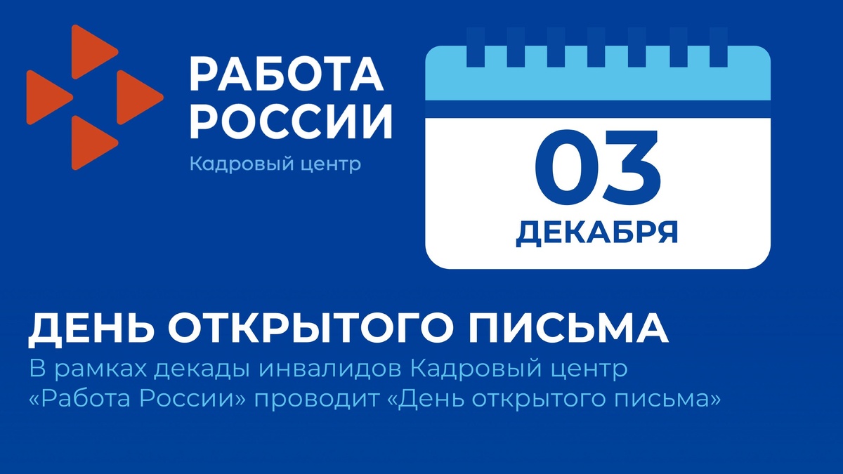 📢 День открытого письма для работников с инвалидностью Кадровый центр «Работа России» приглашает на бесплатные консультации в рамках Декады инвалидов. 03 декабря 2025 года мы проводим «День открытого письма». В этот день каждый работник с инвалидностью может получить квалифицированную помощь по всем вопросам трудового права. В программе дня: ✅ Бесплатная консультация со специалистами в области трудового права. ✅ Разбор сложных ситуаций на рабочем месте. ✅ Ответы на вопросы о регулировании труда лиц с особенностями здоровья. Мы ждем вас: 🗓 Дата: 3 декабря 2025 г. ⏰ Время: с 9:00 до 16:00 📍 Адрес: г. Новороссийск, ул. Малоземельская, д. 15, кабинет № 6. 📞 Телефон для справок: 8(8617) 63-65-69 Не упустите возможность защитить свои трудовые права и получить ответы от профессионалов! #Новороссийск #РаботаРоссии #ДеньОткрытогоПисьма #Инвалидность #ТрудовоеПраво #ДекадаИнвалидов #КонсультацияЮриста