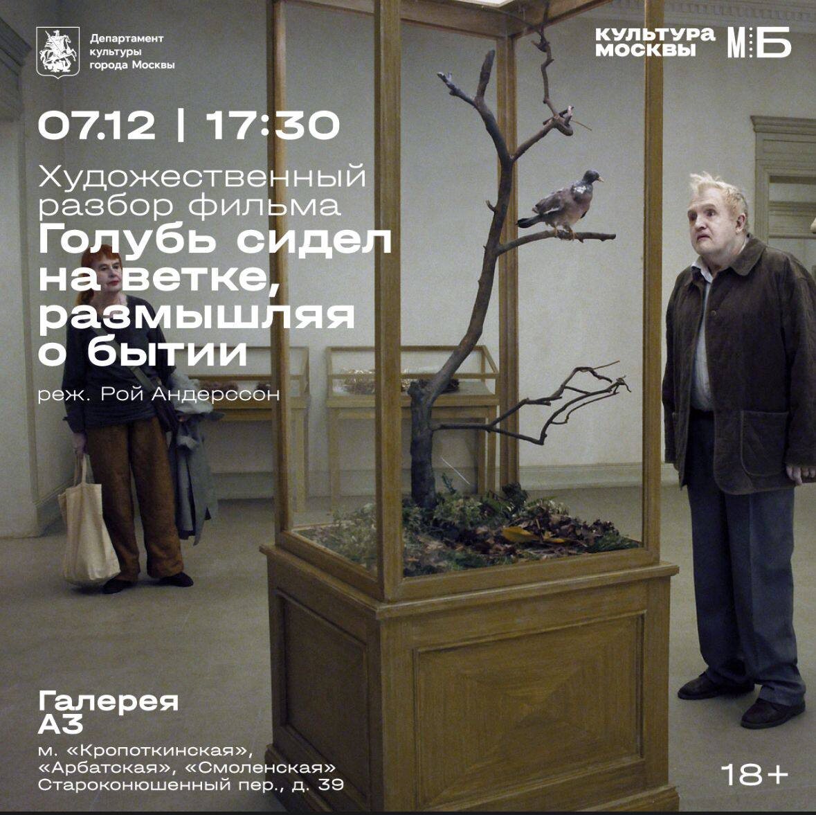 Киноклуб «Голландский угол» приглашает на художественный разбор фильма Роя Андерсона «Голубь сидел на ветке, размышляя о бытии». С режиссером и сценаристом Алексеем Кокориным. Студентам скидка 50% Билета на сайте G-ugol.ru
