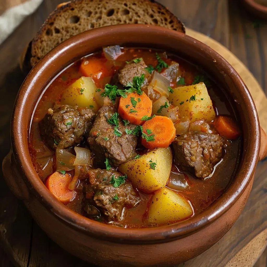 Быстрый ужин за полчаса: гуляш, от которого пальчики оближешь! Приветствую, мои дорогие! 🤝 Любите сытные блюда с насыщенным, «домашним» вкусом? Тогда этот рецепт – ваш спасательный круг в будний день! Мы приготовим настоящий гуляш в быстром формате – без сложных ингредиентов, без долгого томления, но с мощным вкусом, ароматом и теплом на всю семью. 😉 Ингредиенты: - Свинина или говядина – 500 г - Лук репчатый – 1 шт. - Морковь – 1 шт. - Картофель – 4–5 шт. - Чеснок – 2 зубчика - Паприка сладкая – 1 ч.л. - Томатная паста – 1 ст.л. - Лавровый лист – 1 шт. - Соль, перец – по вкусу - Вода или бульон – ~300–400 мл Приготовление: 1. Мясо нарежьте кубиками и обжарьте на разогретой сковороде/в кастрюле с толстым дном до румяной корочки. 2. Добавьте мелко нарезанный лук и тёртую морковь – обжаривайте 3–4 минуты до мягкости. 3. Всыпьте паприку, сразу добавьте томатную пасту и 2–3 ст.л. воды – быстро перемешайте (чтобы паприка не подгорела!). 4. Влейте воду/бул