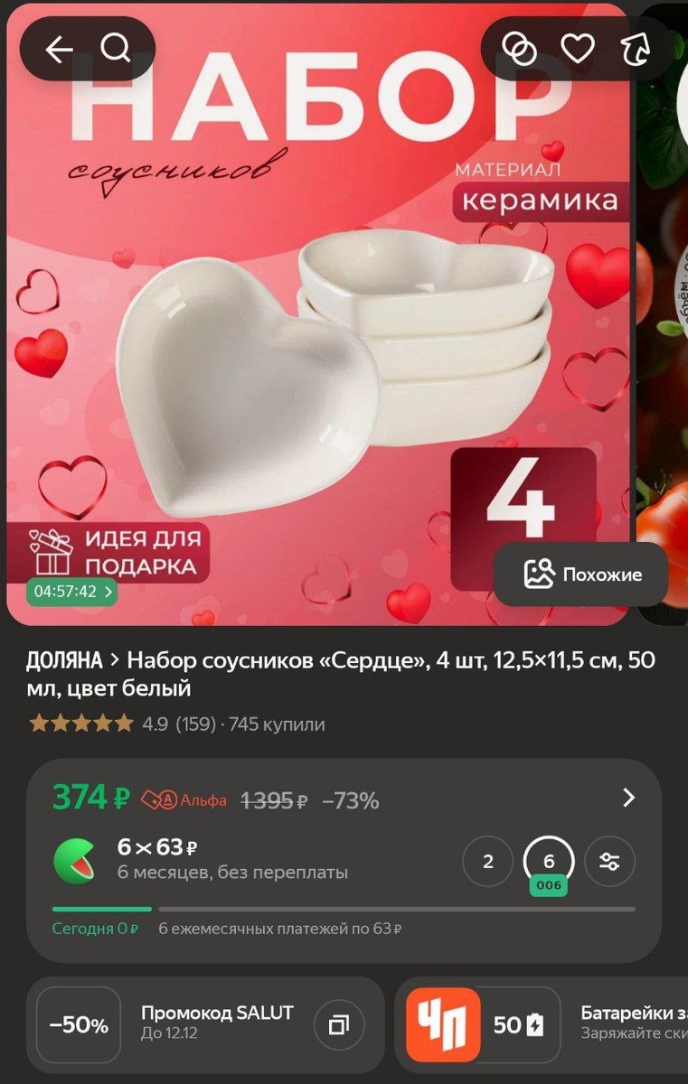 Набор соусников «Сердце», 4 шт, 12,5×11,5 см, 50 мл, цвет белый за 374₽