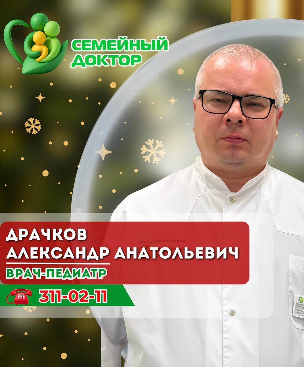 #команда_сети_Семейный_доктор 💊Сегодня знакомим вас с нашим замечательным специалистом — врачом-педиатром Драчковым Александром Анатольевичем. ✅С общим стажем работы 20 лет, Александр Анатольевич закончил Алтайский государственный медицинский университет по специальности «педиатрия» в 2005 году. Он обладает большим опытом как в стационаре, так и на амбулаторном приеме, а также был руководителем педиатрической службы района. ✅Александр Анатольевич владеет широким спектром неотложных и реанимационных мероприятий, включая помощь новорожденным. В настоящее время он заканчивает обучение в аспирантуре по педиатрическому профилю и также является врачом ультразвуковой диагностики. ✅Его специализации охватывают пульмонологию, инфекционные болезни и ревматологию, что позволяет ему вести прием как детей, так и взрослых. 🈯️В период с 2020 по 2023 годы Александр Анатольевич занимал должность главного врача КОВИД-госпиталя, что свидетельствует о его высоком уровне профессионализма и ответствен