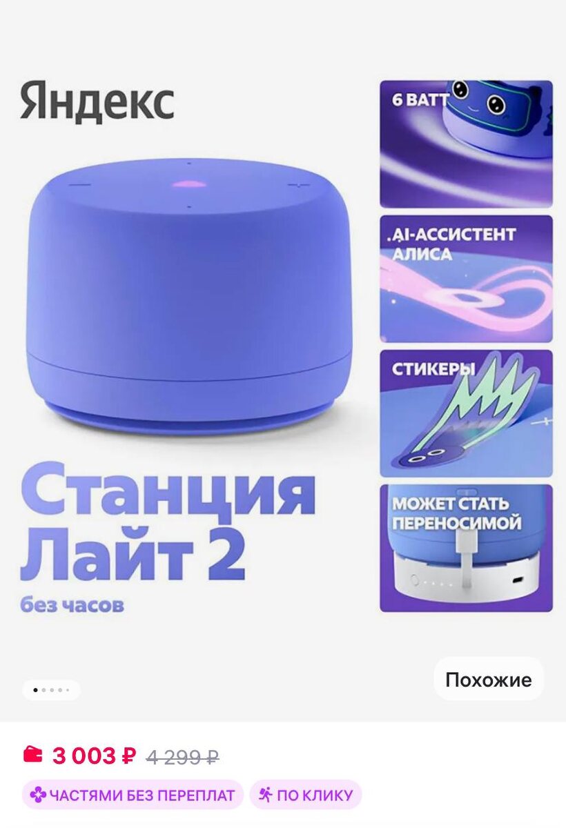 Яндекс Умная колонка Станция Лайт 2 с Алисой, фиолетовая https://www.wildberries.ru/catalog/542565463/detail.aspx?size=747341295 ✅ Подписаться 🔣 Бот с промокодами