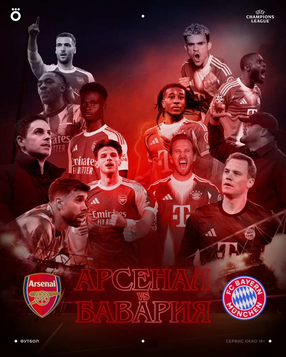 Этим вечером «Арсенал» и «Бавария» схлестнутся в битве за 1-е место в турнирной таблице ЛЧ 💥 Очень странные дела в Лондоне — обе команды еще не проигрывали на общем этапе в этом сезоне. Кто из лидеров победит — неизвестно. Точно знаем одно: надо обязательно смотреть в Okko! 💯 https://okko.tv/s/vd9