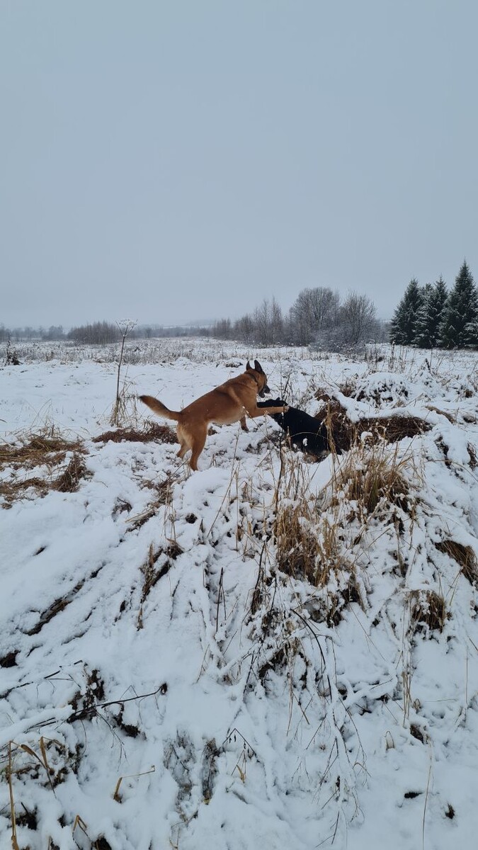 Решила прогуляться с собаками по свежему снежку.