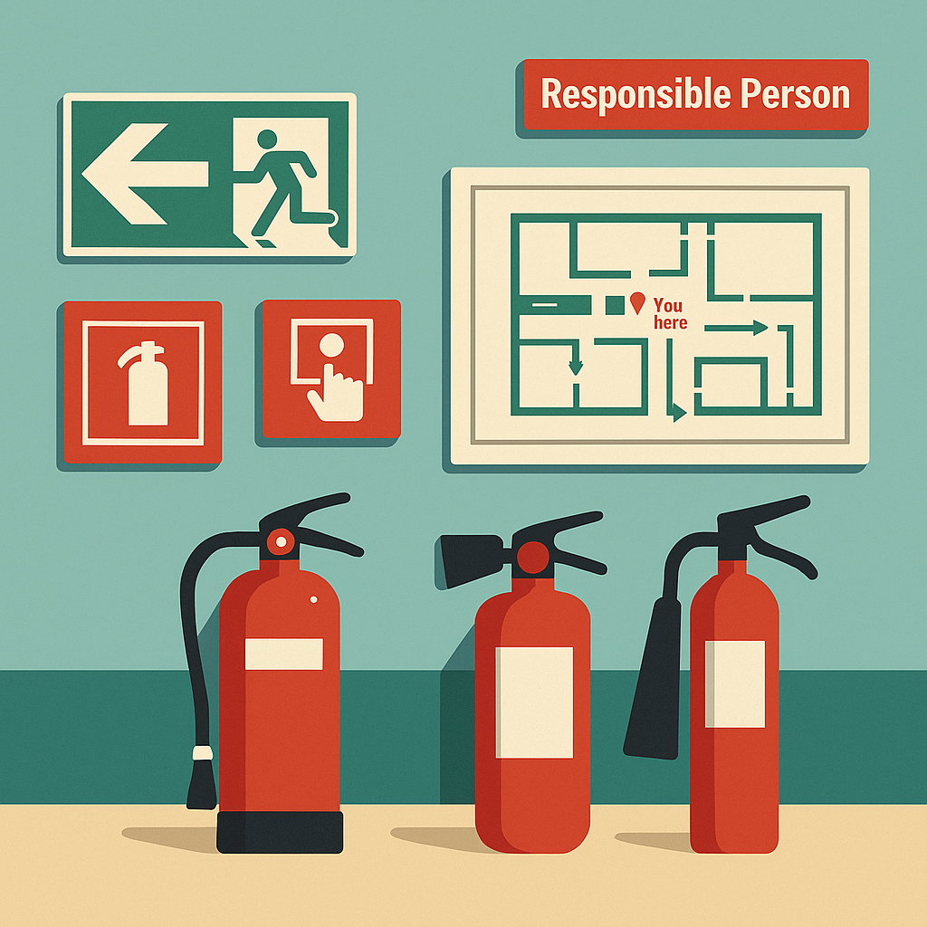 В общепите пожарная безопасность — это не «бумажки на стене», а набор очень конкретных требований. И инспекторы любят проверять именно их: куда повешены указатели, есть ли ИПР, правильно ли стоят огнетушители, а план эвакуации вообще читаемый или просто «для галочки». В кафе, ресторанах и столовых обязательны эвакуационные указатели и знаки пожарной безопасности. Это зелёные стрелки, выходы, красные квадраты «Огнетушитель», «Пожарный кран», «ИПР». Основные правила: Если посетитель идёт от входа в зал, он должен сразу понимать, где ближайший выход. Если идти приходится «по наитию», значит схема размещения неправильная. ИПР — это красный блок с кнопкой или стеклом «нажать при пожаре». Его ставят на путях эвакуации, на высоте 1,5 м до рабочей части. Важно: Общепит — это кухня, электрооборудование, горячие поверхности и залы с людьми. Поэтому минимальный набор обычно такой: Есть две логики: От любой точки до ближайшего огнетушителя должно быть: Если у вас кухня + зал — почти всегда падаем