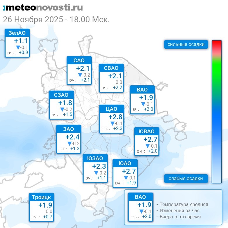 В 18:00 в Москве было от +1.2°C до +3.2°C, средняя температура +2.3°C #погода #Москва #осень #температура #26ноября #среда