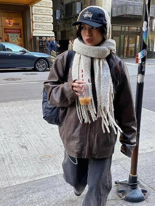 Напоминаем про самый популярный способ носить шарф: почти все инфлюенсеры обвязывают его вокруг головы как балаклаву. Кстати, в этом сезоне под теплый аксессуар часто надевают кепку. Grazia