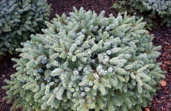 Это низкорослое деревце вырастает всего лишь до 0,6–1 метра высотой, тогда как ширина кроны может доходить до полутора метров. Благодаря плотной, широкой и округлой форме своего ветвления, ель приобретает элегантный внешний вид, прекрасно вписываясь в ограниченное пространство. Хвоя небольшая, длиной порядка 1–1,5 сантиметра, слегка заостренная и колючая, с характерным оттенком верхней части листьев серовато-зеленым цветом, а нижней стороны — серебристым блеском, придавая ей особую привлекательность.