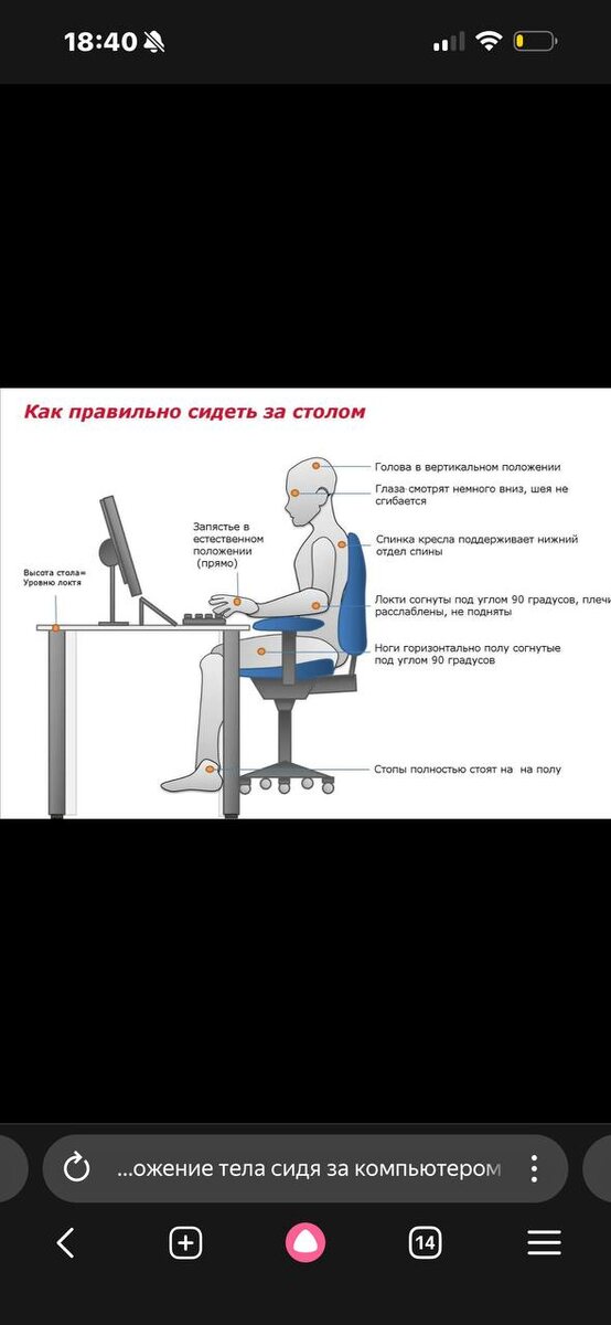 Правильное положение тела во время работы за компьютером поможет снизить нагрузку на позвоночник, мышцы и суставы.