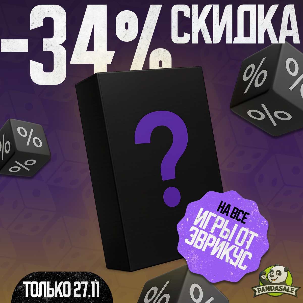 Уже завтра стартует акция на все игры от издательства Эврикус! 🎉 Только 27.11 в офлайн-магазине PandaSale на Суворова, 52а — дарим скидку 34% на все игры от издательства Эврикус. Как получить скидку: 1. Подписаться на нашу группу ВК или телеграм-канал 2. На кассе сказать промокод BlackPanda 🐼 Важно: — Скидка действует только в магазине на Суворова, 52а — Не суммируется с личной скидкой — Товар должен быть в наличии Пополните полку играми от Эврикус — завтра самое время взять то, что давно хотели! ✨🎲 #PandaSale #PandaAction #BlackPanda #BlackFriday