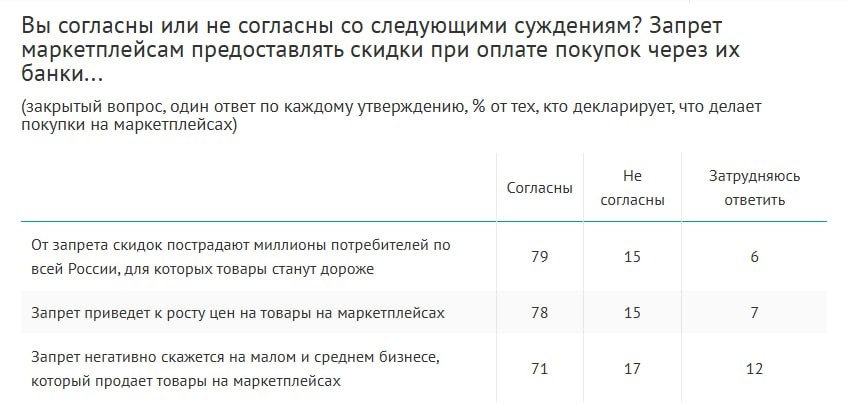 По данным опроса ВЦИОМ гражданам не очень понравилась идея ограничения скидок на маркетплейсах