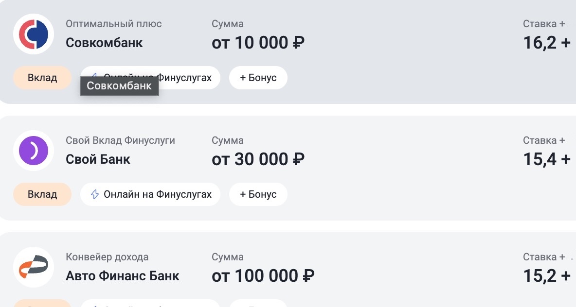 Единственное, придется поспешить - предложение действует только один день. Вот все детали - коротко: Какой промокод? TRY2025. Что даёт? +1% к ставке всем клиентам маркетплейса "Финуслуги". Кто может применить? Код работает для всех клиентов - и новичков, и "старичков", т.е. уже действующих. На какой срок можно открыть вклад с бонусом? От 1 до 6 месяцев (включительно). Срок действия? Оформляться надо быстро - "промик" действителен до 27 ноября включительно. Т.е. с "промиком" можно получить вклад сроком до 17,2% годовых, что даже больше ключевой ставки ЦБ РФ на данный момент (16,5%). Если есть желание и возможность - выбирайте вклад, при оформлении введите TRY2025 и получайте +1% к ставке. P.S. Подписывайтесь на "Вкладисту", чтобы не пропустить новые статьи про выгодные вклады и накопительные счета! Мы в Telegram (общий канал)