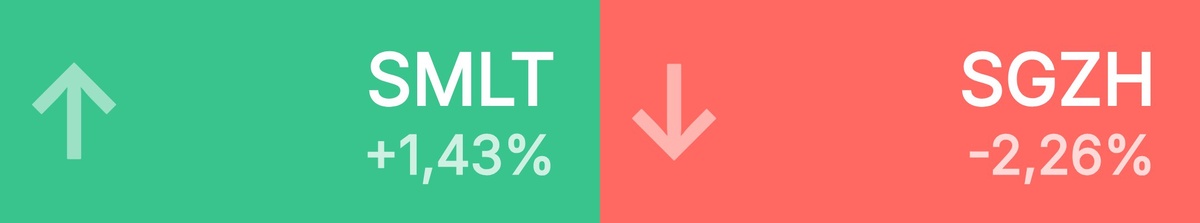 🔺 Топ-10 лидеров роста среди крупнейших акций: ГК Самолет • 923 ₽ • 1,43% Аэрофлот • 57,47 ₽ • 1,18% Транснефть • 1 316 ₽ • 0,87% МТС • 213 ₽ • 0,64% ФосАгро • 6 620 ₽ • 0,61% ЕвроТранс • 133 ₽ • 0,45% Циан • 677 ₽ • 0,36% ЭсЭфАй • 1 628 ₽ • 0,28% Инарктика • 475 ₽ • 0,21% Россети • 0,06 ₽ • 0,19% 🔻 Топ-10 лидеров падения среди крупнейших акций: Сегежа • 1,21 ₽ • -2,26% Татнефть п • 553 ₽ • -2,12% Мечел • 71,02 ₽ • -1,76% Совкомбанк • 13,02 ₽ • -1,74% Мечел прив • 65,80 ₽ • -1,72% Группа Рус • 120 ₽ • -1,34% Юнипро • 1,49 ₽ • -1,32% РуссНефть • 99,65 ₽ • -1,24% Мосбиржа • 174 ₽ • -1,21% Татнефть • 593 ₽ • -1,20%