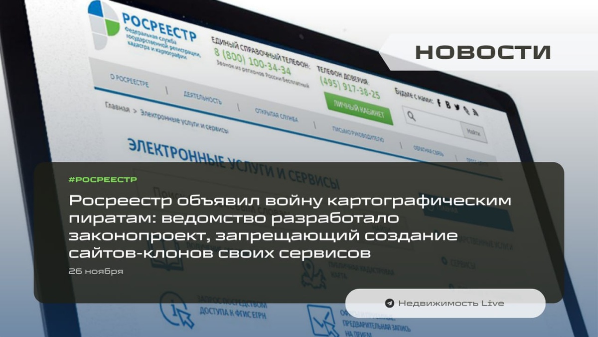 ⚡️ Росреестр объявил войну картографическим пиратам: ведомство разработало законопроект, запрещающий создание сайтов-клонов своих сервисов