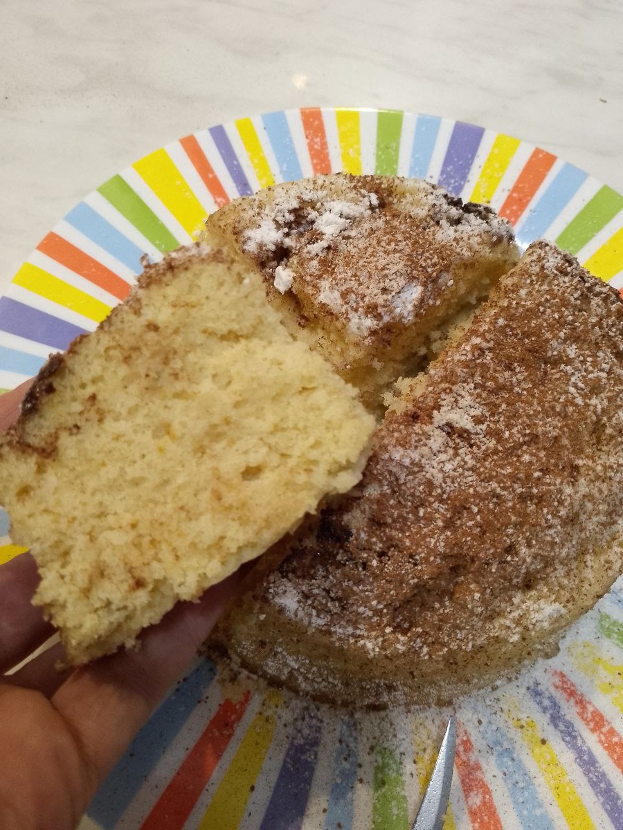 Привет всем любителям вкусной домашней выпечки😁 Осталась я дома одна. Решила, что готовить сладкие пироги и другую выпечку не буду. Похудею, скину пару-тройку кг! Ага! Сейчас! Наступил вечер, поздний вечер! А мне сладкого захотелось, прям сил никаких нету! Пошла на кухню, по амбарам помела, по сусекам поскребла и замутила себе вкусняшку. Маленький десертик, для себя любимой (сказала, что печь не буду😲) Вот, не сдержалась! Я вовсе не кулинар, а скорее экспериментатор-изобретатель! Вспомнила, что многие десерты делают в микроволновке! Смешала, всё, что нашла на кухне. Маргарин - 100 г (мягкий) Сахар - 100 г Яйцо- 1 шт. Молоко - 5 ст. л. Корица молотая - 0,5 ч. л. Ваниль - 1 ч. л. Масло раст. - 2 ст. л. Мука - 1оо-150 г Разрыхлитель - 1 ч. л. В микроволновку на 7 минут при полной мощности. Очень быстро и получилось вкусно👍