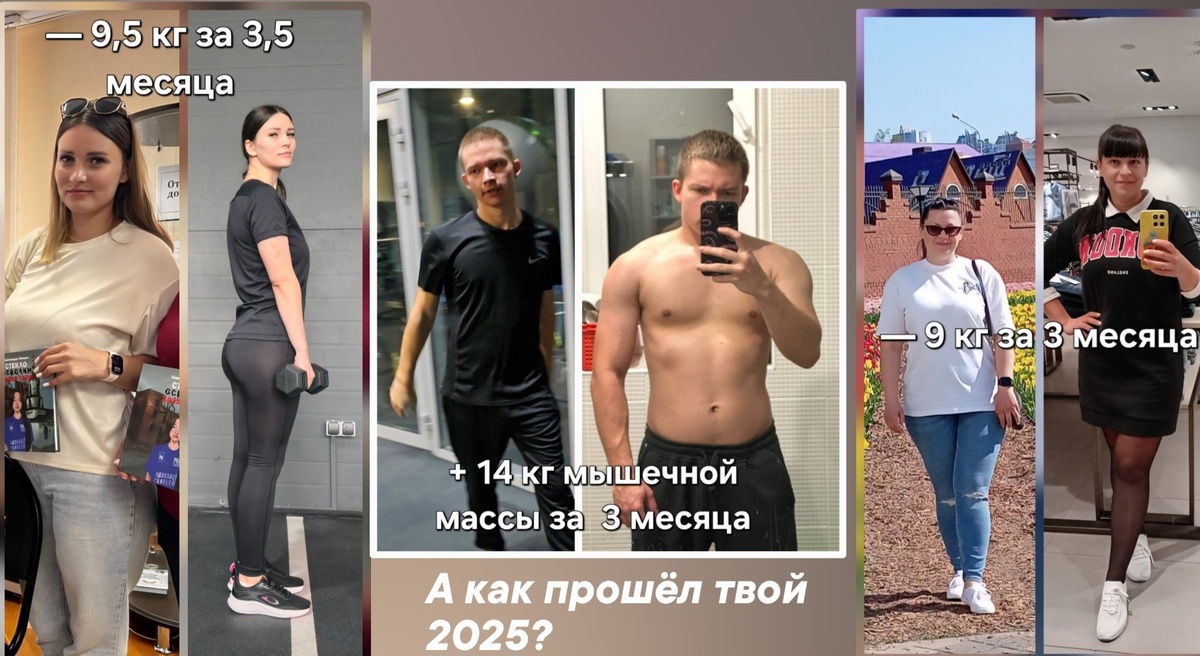 Мои клиенты уже подвели итоги года: -9 кг, -9,5 кг, +14 кг мышц. Ваша очередь