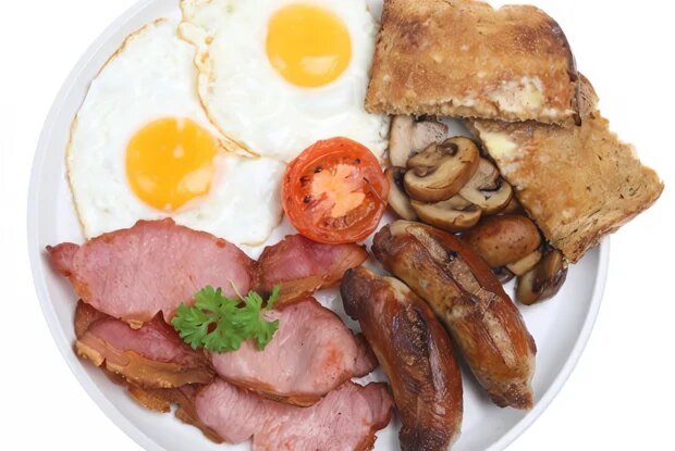 ИНГРЕДИЕНТЫ ПОРЦИИ 3 300 гБекон 4 штуки Куриное яйцо 2 штуки Помидоры черри 2 штуки Свежие грибы 200 г Содовый хлеб 25 г Сливочное масло по вкусу Соль ИНСТРУКЦИЯ ПРИГОТОВЛЕНИЯ 1 Порезать бекон на 6 кусков и положить в большую сковороду. На среднем огне поджарить с двух сторон до образования золотистой корочки. Выложить на две тарелки. 2 Добавить на сковороду масла, разбить яйца и приготовить яичницу-глазунью, не повредив желтки. Когда белок поджарится, а желток еще будет оставаться жидким, поделить яичницы по двум тарелкам. 3 В то же время на другой сковороде обжарить порезанные помидоры и грибы, непрерывно помешивая. Отдельно обжарить хлеб с двух сторон. Разделить по тарелкам и сразу подавать на стол. Традиционный ирландский завтрак, который подают с ирландским хлебом и запивают сладким чаем с молоком. Солить яичницу и овощи можно как в процессе приготовления, так и после подачи на стол.