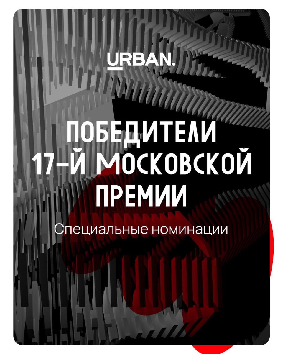 ПОБЕДИТЕЛИ 17-й МОСКОВСКОЙ ПРЕМИИ URBAN: специальные номинации Категория для тех, без кого не получилось бы быть первыми во всех остальных номинациях! Поздравляем победителей! Не останавливайтесь на достигнутом, повышая качество всех проектов, к которым вы причастны.