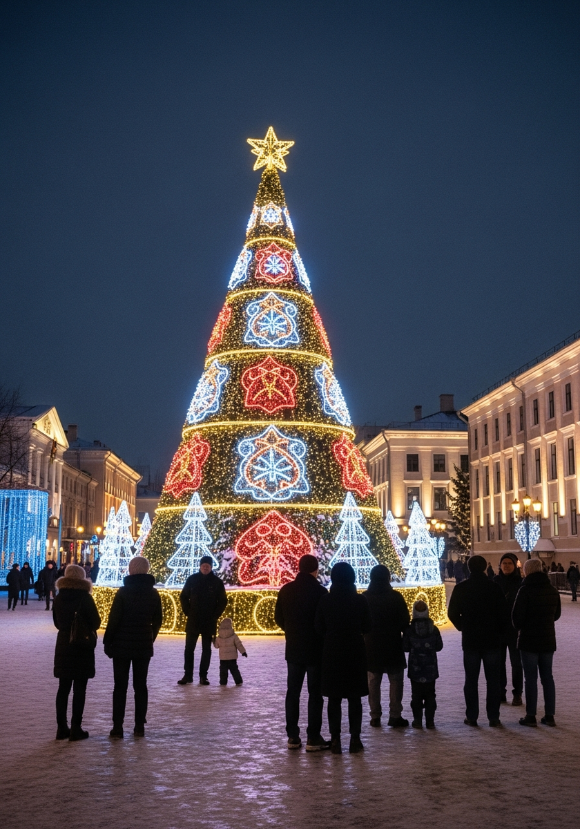 Сердце праздничного Воронежа превращается в настоящую зимнюю сказку. Главная елка высотой под 20 метров, сверкающая тысячами огней, создает волшебную атмосферу для всей семьи.