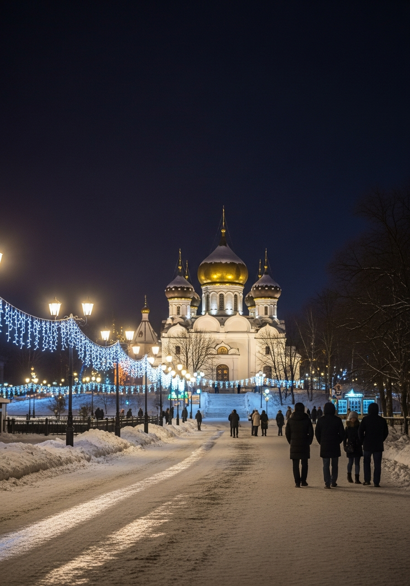 Второе упоминание оправдано важностью храма для новогодних праздников — именно здесь проходят главные рождественские богослужения. В морозные вечера золотые купола собора, освещённые прожекторами, создают неповторимую праздничную атмосферу.