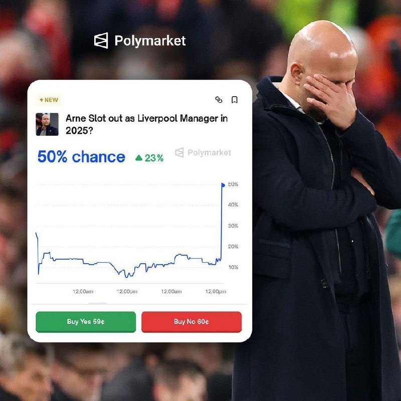 Polymarket повысил до 50% вероятность увольнения Арне Слота с поста главного тренера "Ливерпуля" 📈