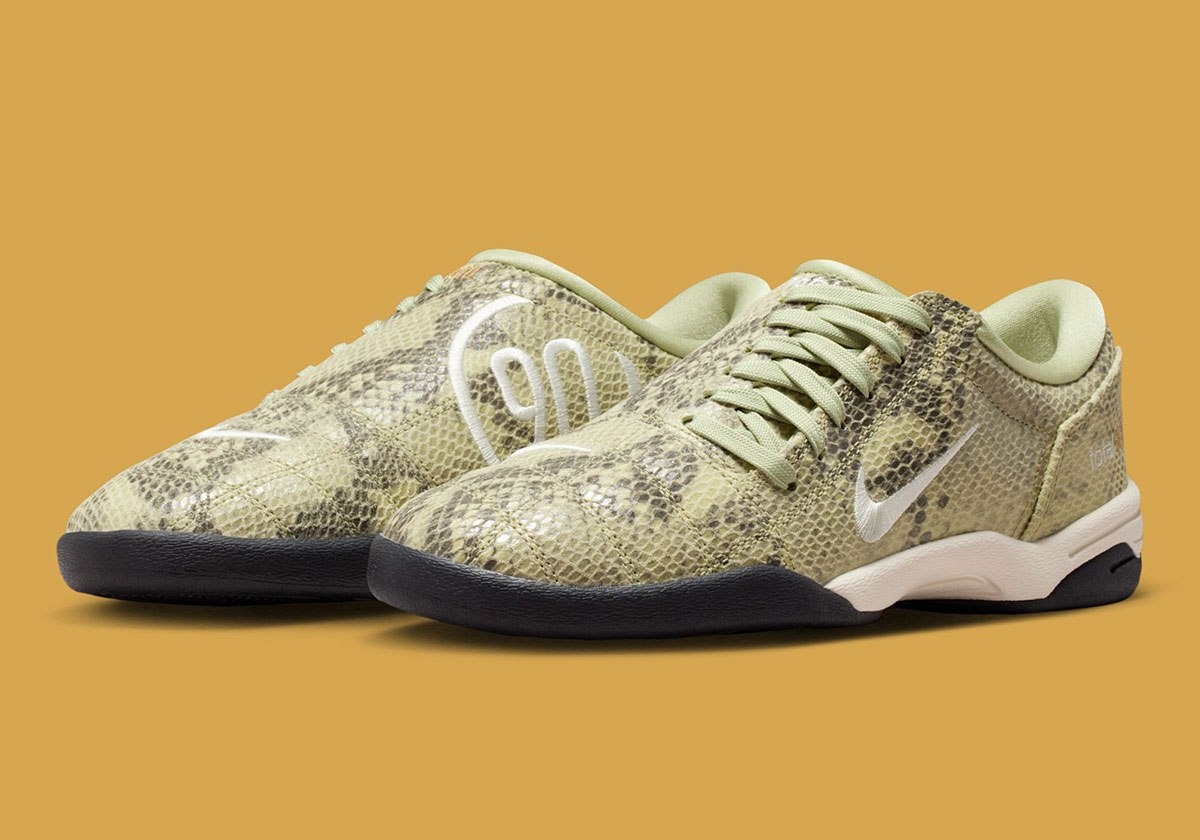 Nike Total 90 III 🐍 в расцветке "Olive Aura" Nike продолжает развивать линейку Total 90 III, вдохновлённую футбольной эстетикой. Новая модель выполнена в расцветке "Olive Aura" с использованием текстуры, напоминающей кожу змеи. Верх кроссовка имеет землистый оттенок, а подошва – чёрный цвет. Релиз запланирован на 9 декабря для женщин. 👟