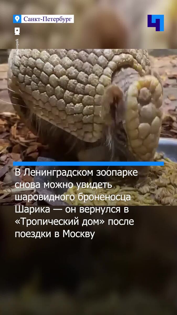 В Ленинградском зоопарке снова можно увидеть шаровидного броненосца Шарика — он вернулся после «провальной» попытки создать пару в Московском зоопарке. Попытка «сватовства» закончилась тем, что молодые броненосцы не нашли общий язык — и Шарик вернулся домой. Экзотический зверек приехал обратно в Петербург в начале осени, прошел карантин и уже доступен для посетителей в павильоне "Тропический дом". Шарик известен своим характером: он строго охраняет личные границы и при малейшем стрессе сворачивается в плотный шар. Активным броненосец бывает вечером, а днем предпочитает отдых. Животное родилось в 2017 году во Вроцлаве и живёт в Ленинградском зоопарке с 2019-го.