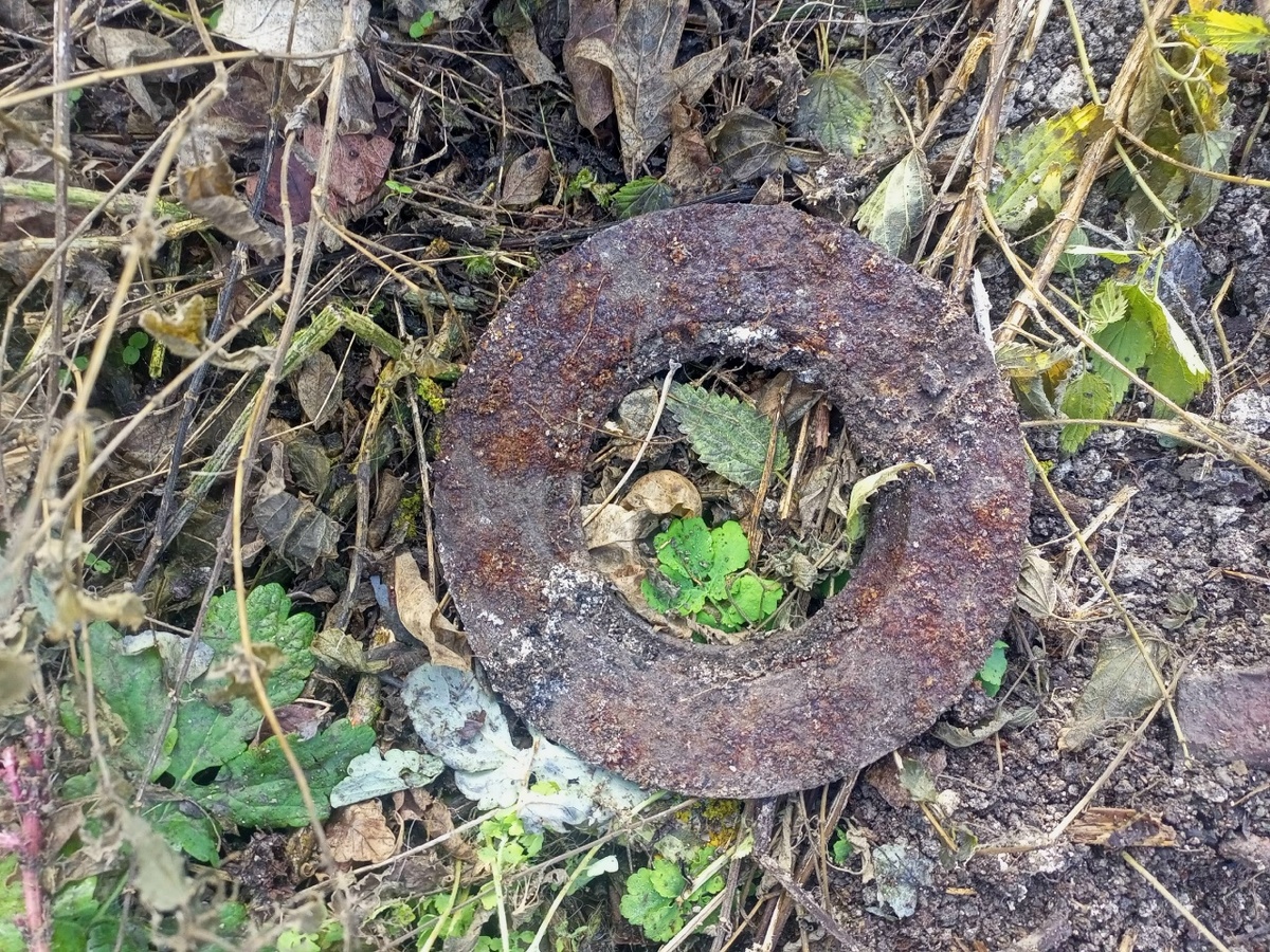 Приветствую друзья. Снова выбрался на коп, можно сказать в свое излюбленное место. Объединил сегодня и коп и чердачный поиск. Приезжаю сюда не раз и буду копать пока не закончатся находки. Далековато конечно ну ничего. Зато интересно и новые знакомства. Только подъехал к месту и откопал первую находку, а откопал я ее там, где в прошлый раз закончил. Вот такой вот печной блин. Таким блином в прошлый раз заканчивал и в этот раз начал. По дороге шел мужичек, увидел, что я ковыряюсь, поприветствовал, попросил огонька и……….. на полтора часа мой коп прекратился. Он был слегка выпивший и жаждал общения, да и я не против был пообщаться. В основном говорил он, рассказывал историю своего села и истории из жизни. Вообще было интересно, кстати сказал, что у него тоже МД дома лежит и что изредка с ним выходит покопать. Я так понял, что у него Аська. Ну а че отличный прибор))) Ну ладно, че то я отвлекся. Попрощавшись с товарищем продолжил копать в том же месте, где вываливались блины. Сигналы были г
