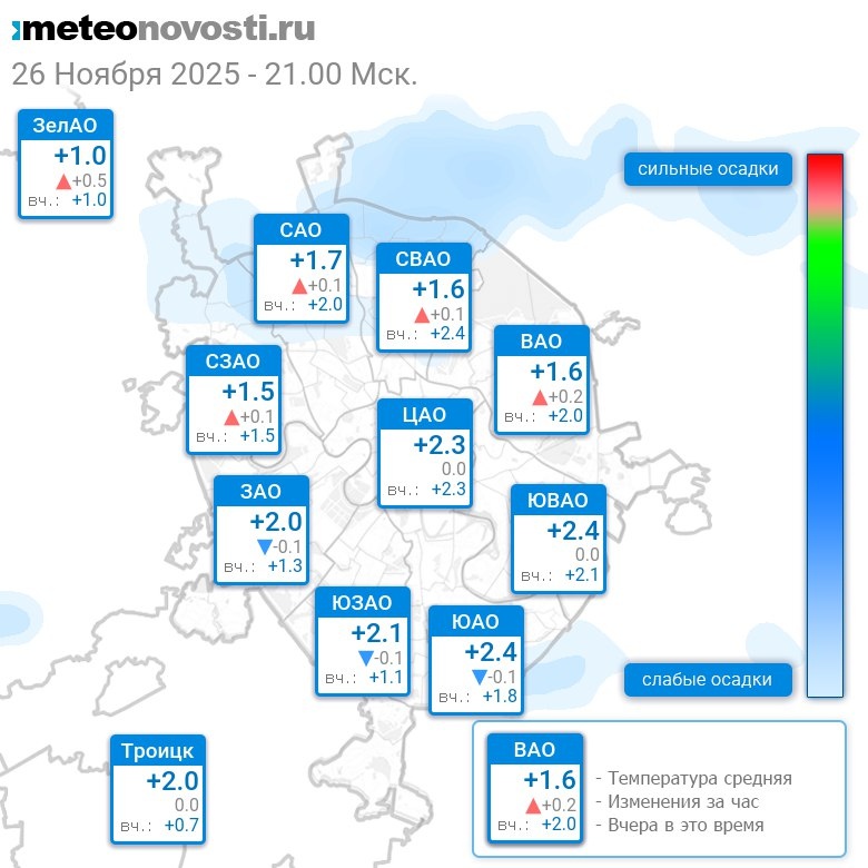 В 21:00 в Москве было от +0.5°C до +3.2°C, средняя температура +1.9°C #погода #Москва #осень #температура #26ноября #среда Перейти на сайт Прогноз погоды на 14 дней