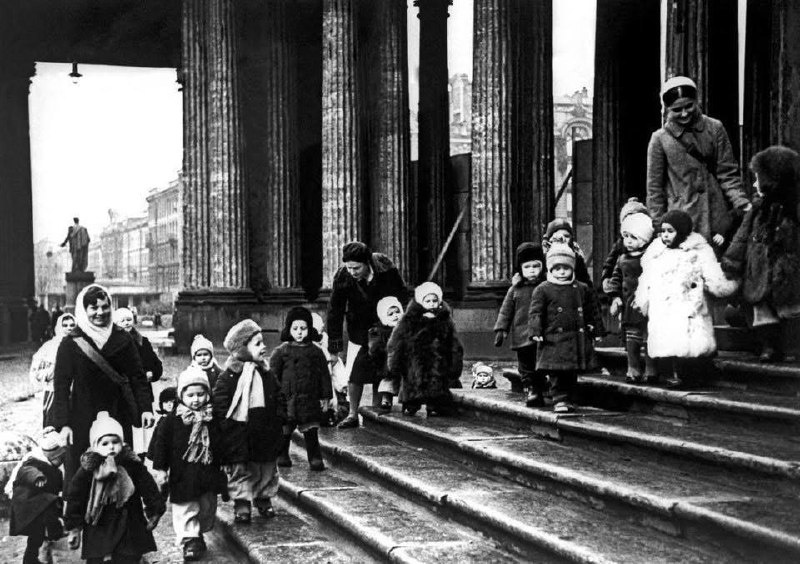 Ребята из детских яслей №237 на прогулке во время блокады Ленинград, 1943 год
