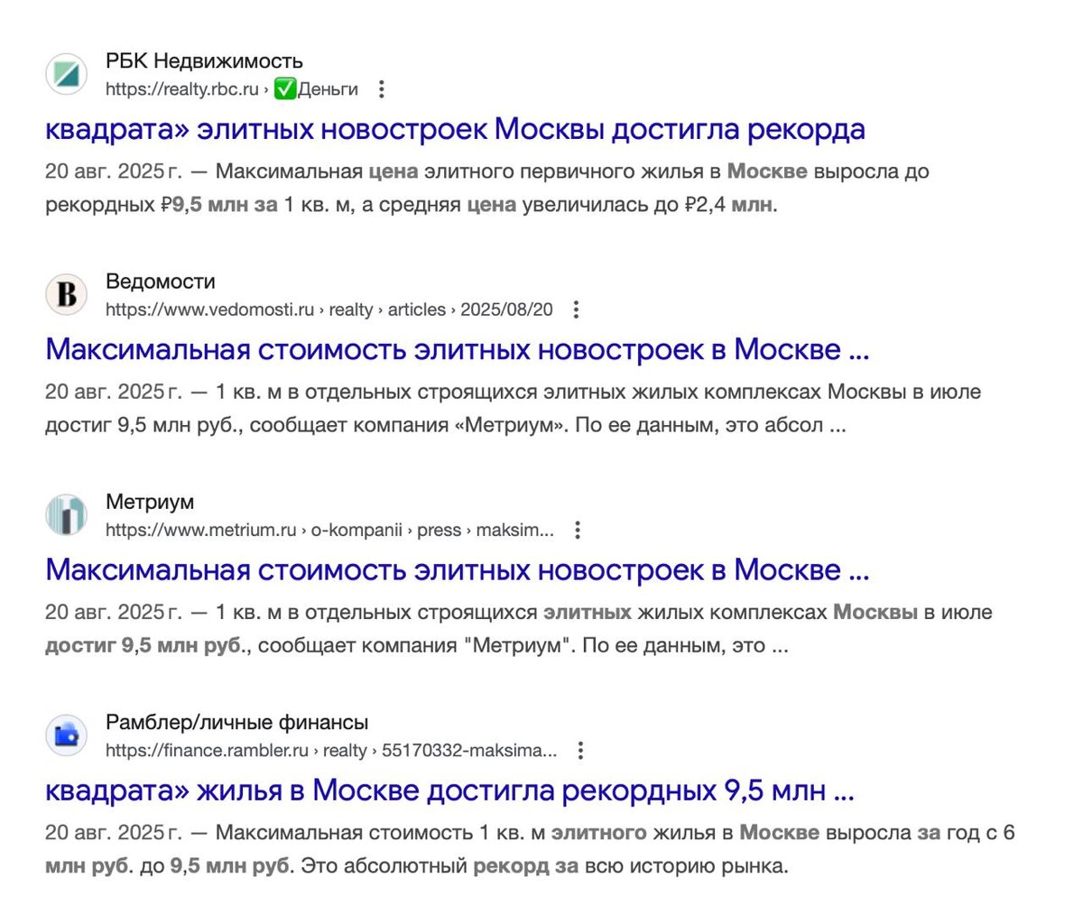Недавно наткнулся на заголовок в РБК: "Максимальная цена «квадрата» элитных новостроек Москвы достигла рекорда. В июле максимальная цена 1 кв. м в элитном сегменте Москвы выросла до ₽9,5 млн" Чего-о-о-о? Какие 9.5 миллионов? 😏 Технологии доктора Геббельса, который преуспел в промывании мозгов человеческим массам, в действии. Понимаете, как это работает? Собственник, который продаёт свою "элитку", построенную при царе Горохе и у которого за прошлый год было три показа, читает такой заголовок и... Правильно - поднимает цену! Бинго! Ну а что? Раз где-то там выросло, то значит и у меня тоже! - Алло, Александр? Поднимите цену на 10%. Тут вот РБК пишут... Он не задаётся вопросом, что "выросло" в больной голове какого-то владельца девелоперской компании, который решил, что если его "уникальный пентхаус"(нарочно взял в кавычки) будет стоить 9.5 млн за квм, то за право купить это чудо сразу выстроится в очередь из фигурантов списка Forbes🤣 Ваш собственник не включит голову и не допрёт, что эт